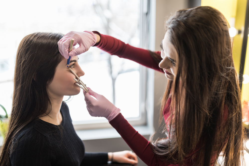 Diseño personalizado de cejas y aplicación de tinte para armonizar el rostro y definir la expresión.
